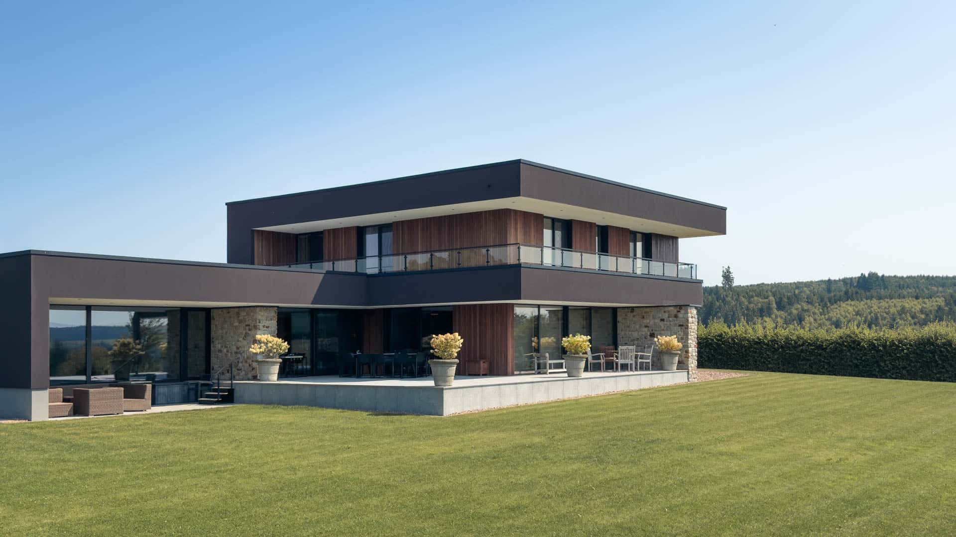 ermöglichen Balkone mit Rundumblick. Raumhohe Fenster bieten wunderbare Ausblicke in die Natur