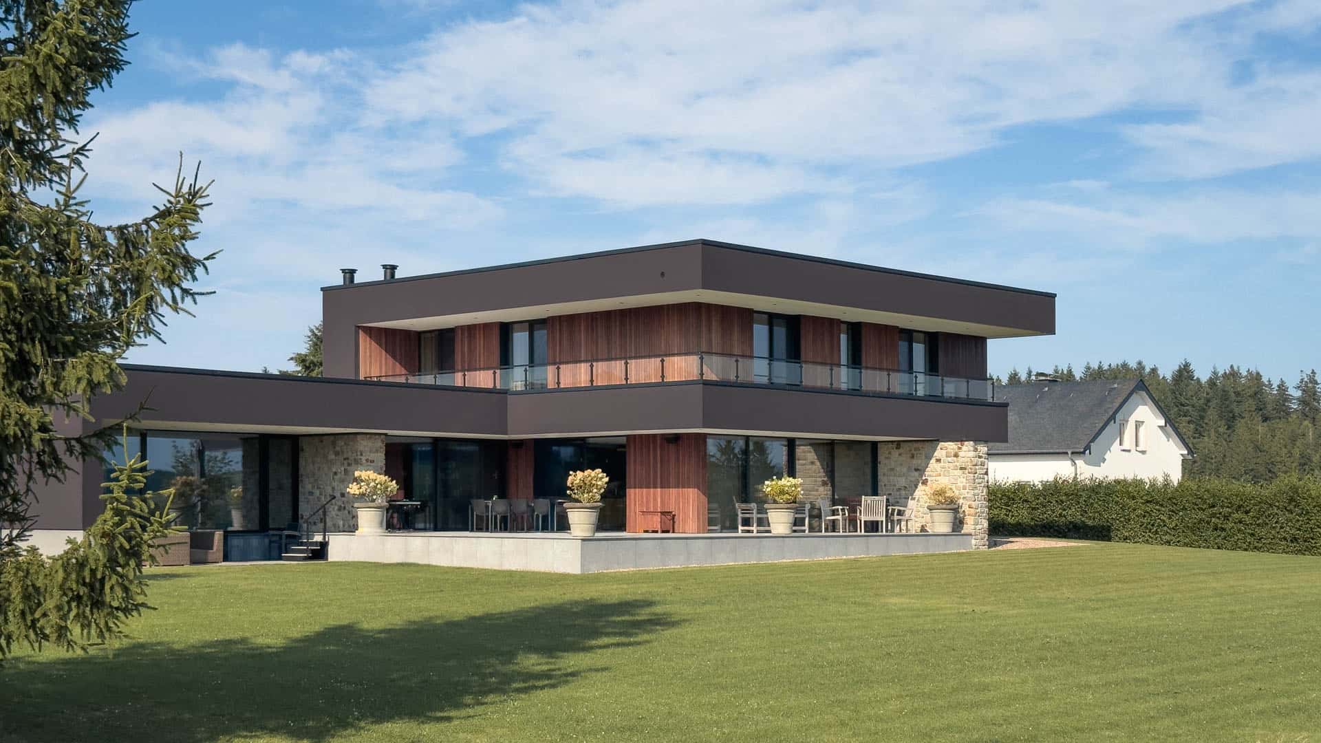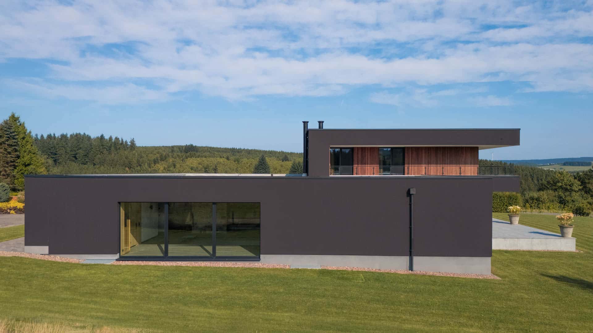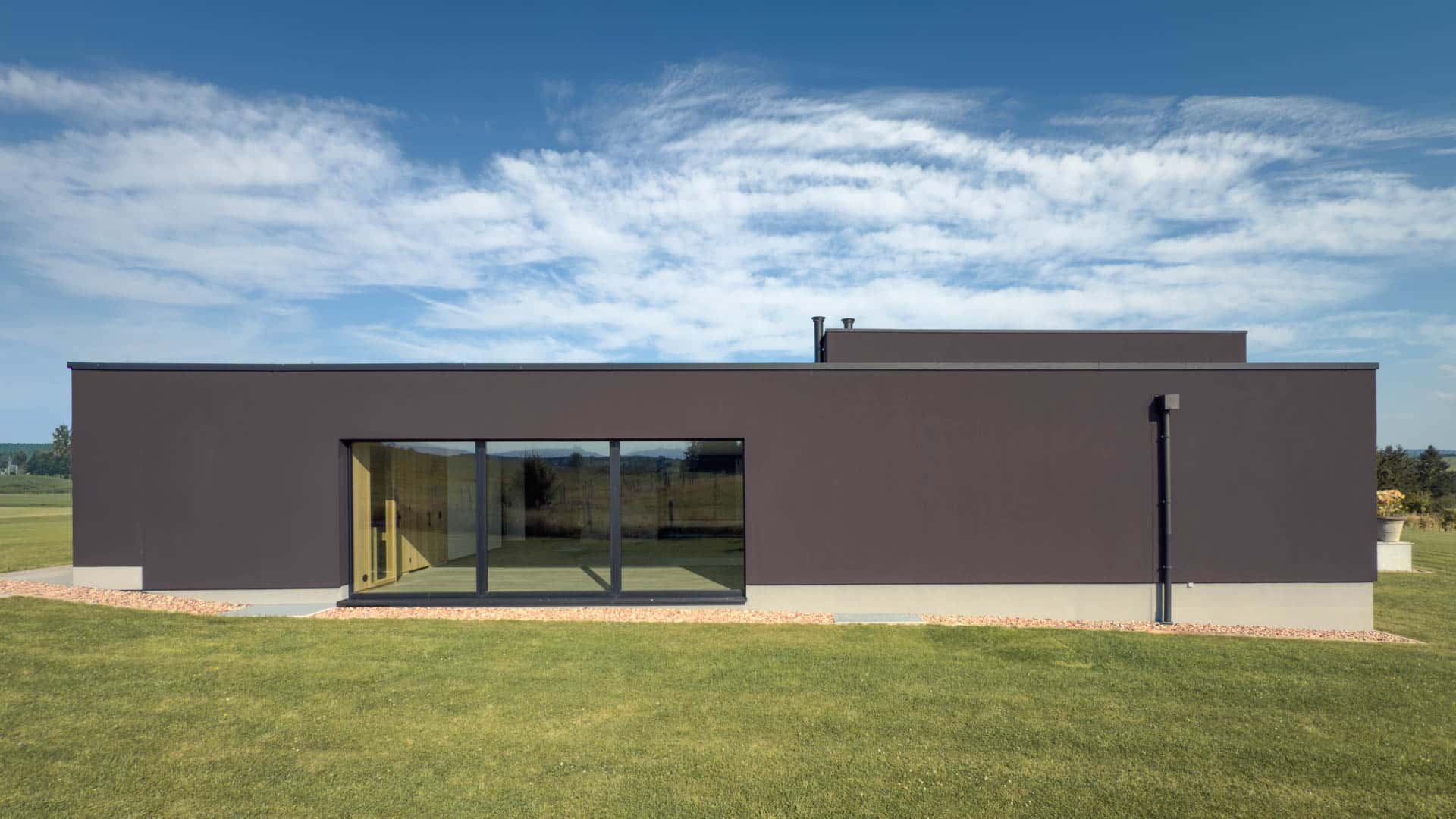 Horizontale Architektur und großzügige Überdachungen spenden im Sommer Schatten und