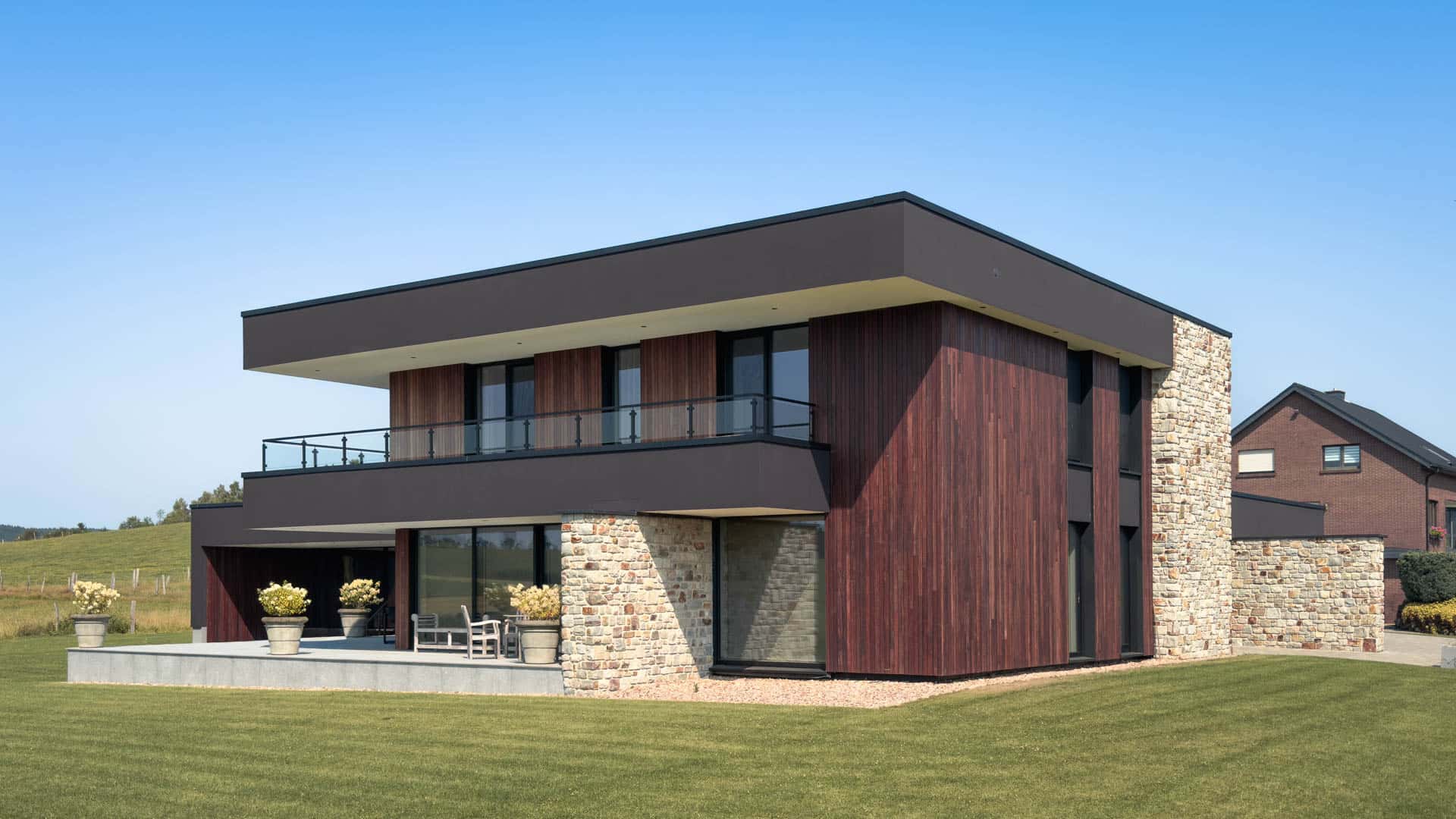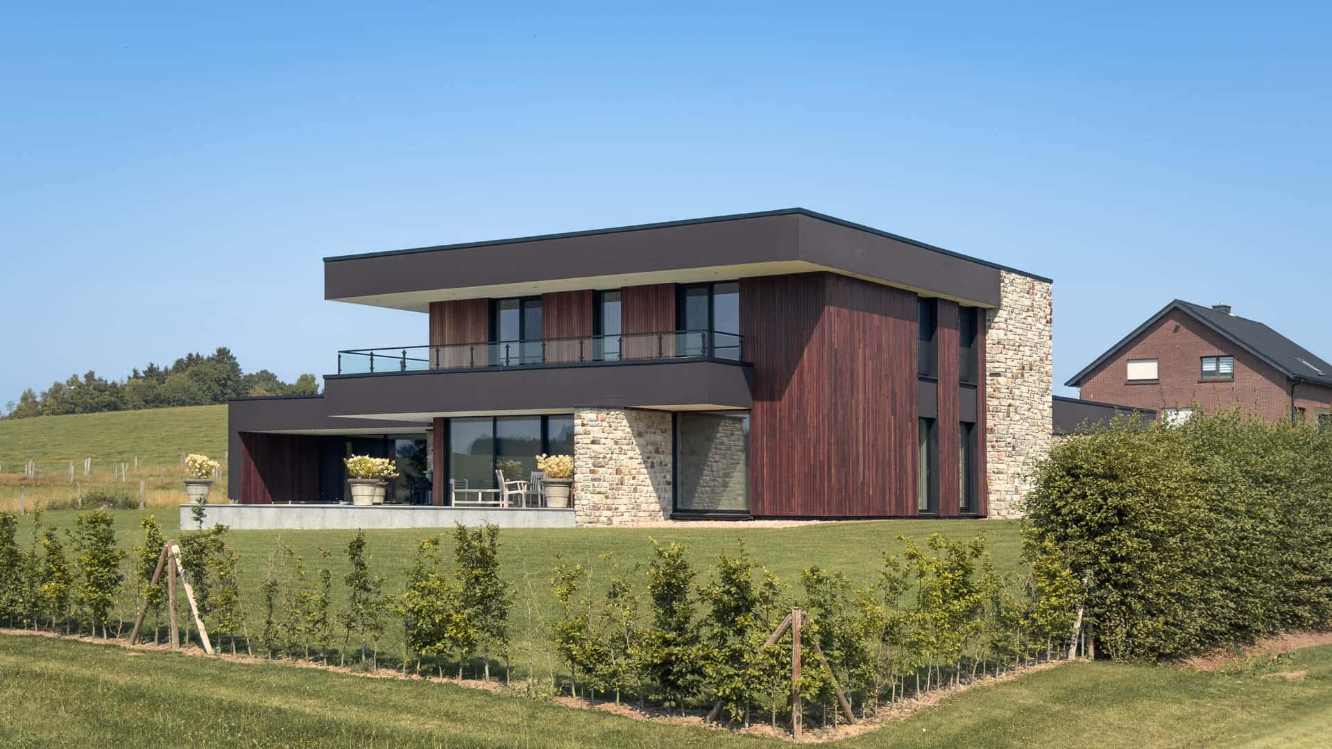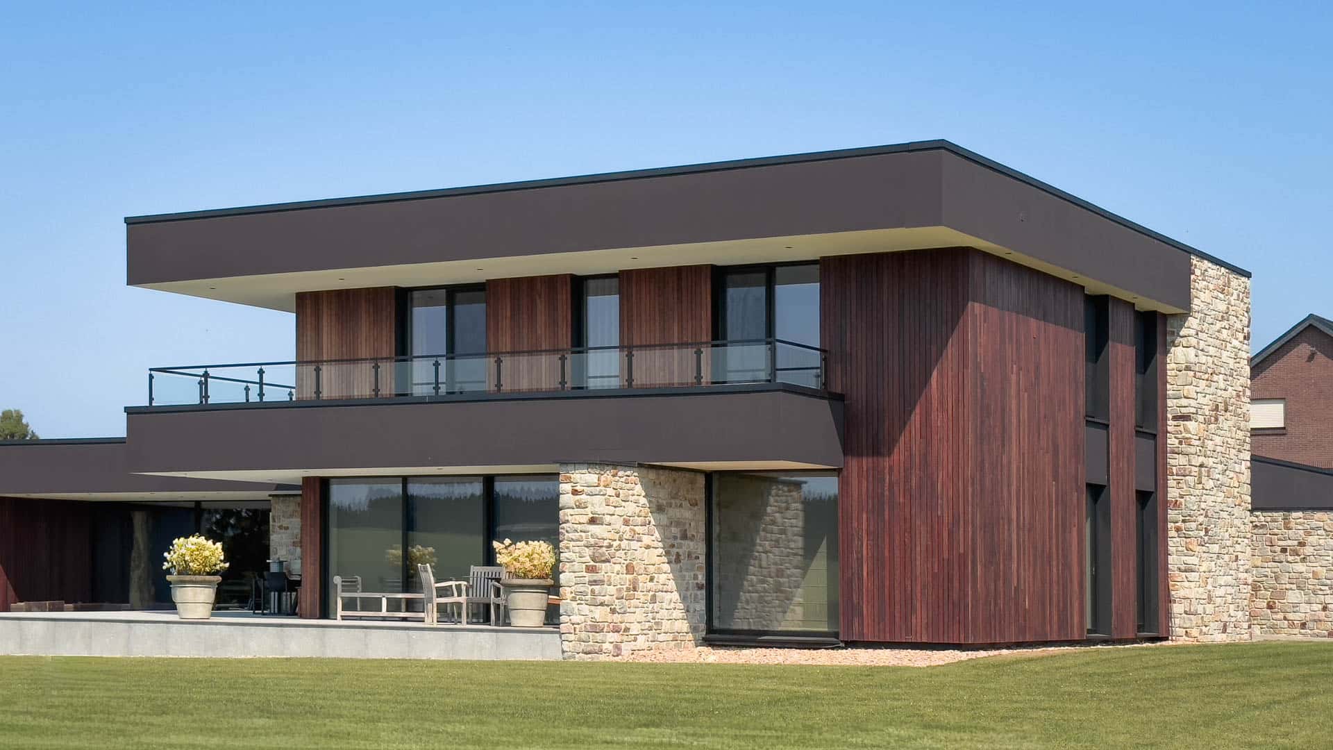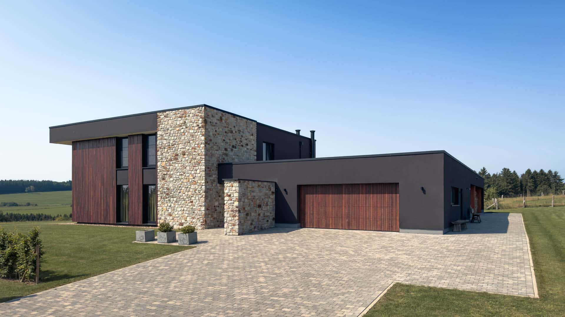 Horizontale Architektur und großzügige Überdachungen spenden im Sommer Schatten und