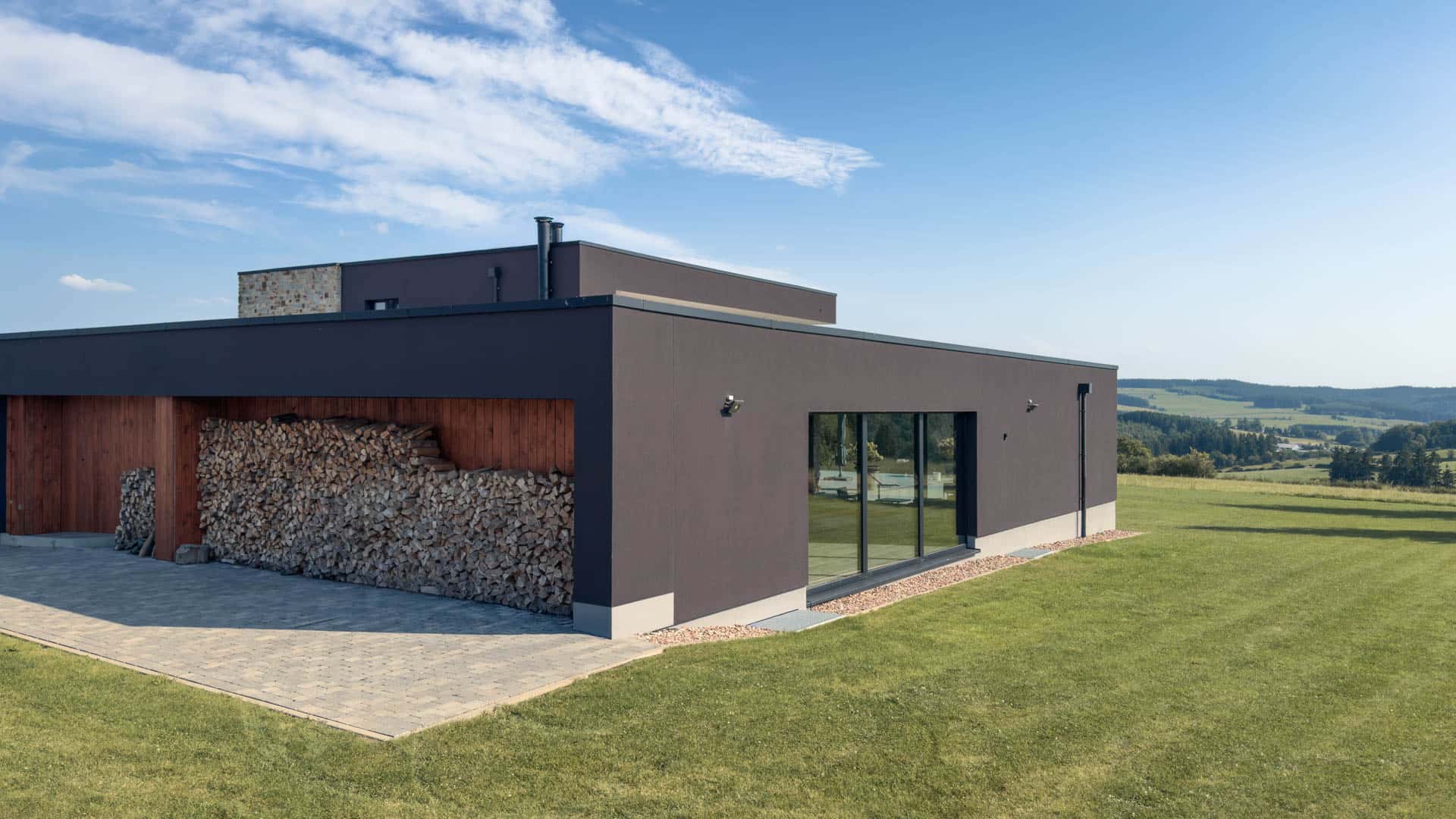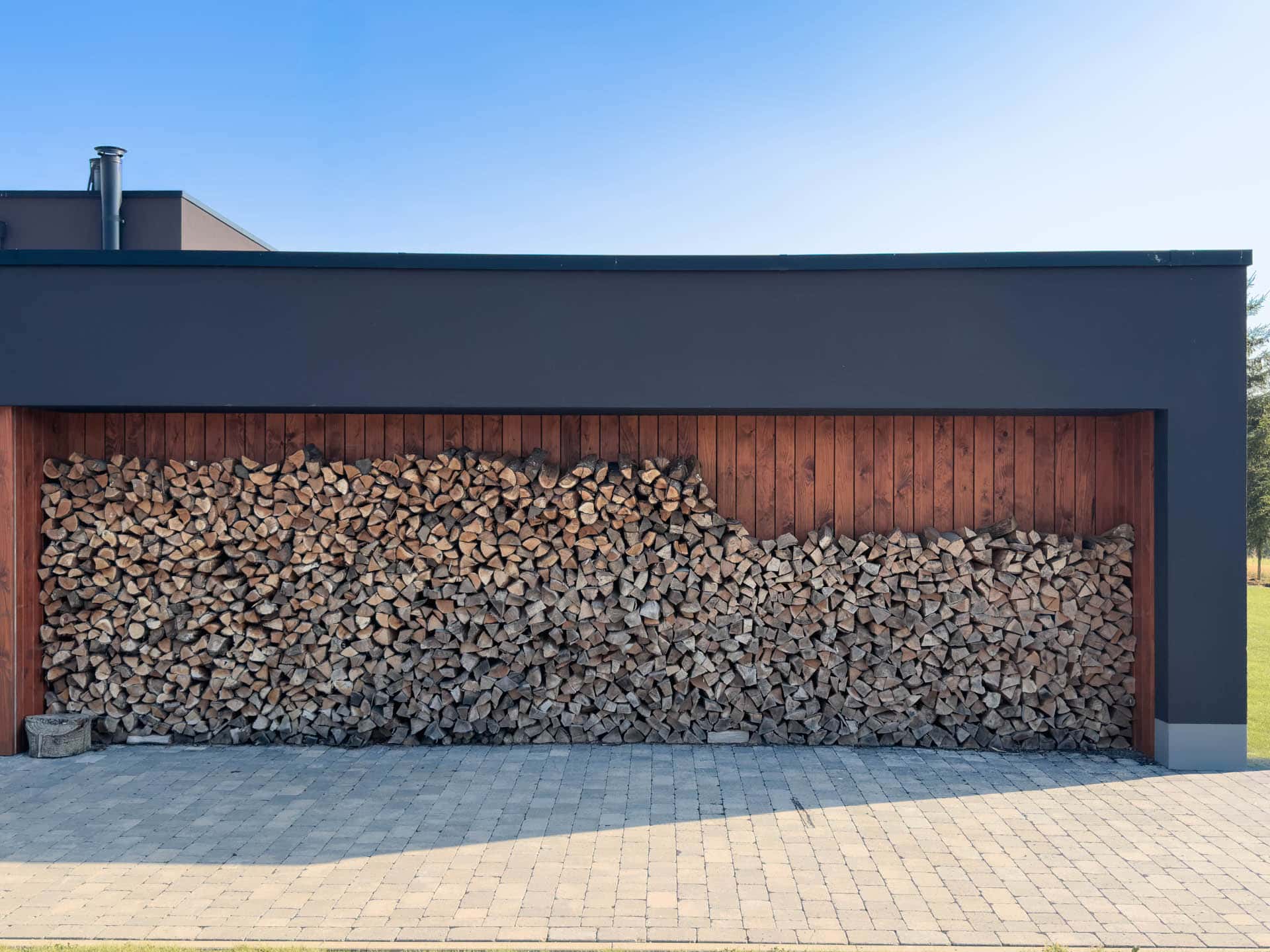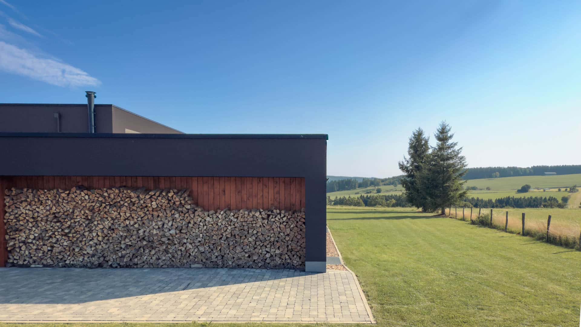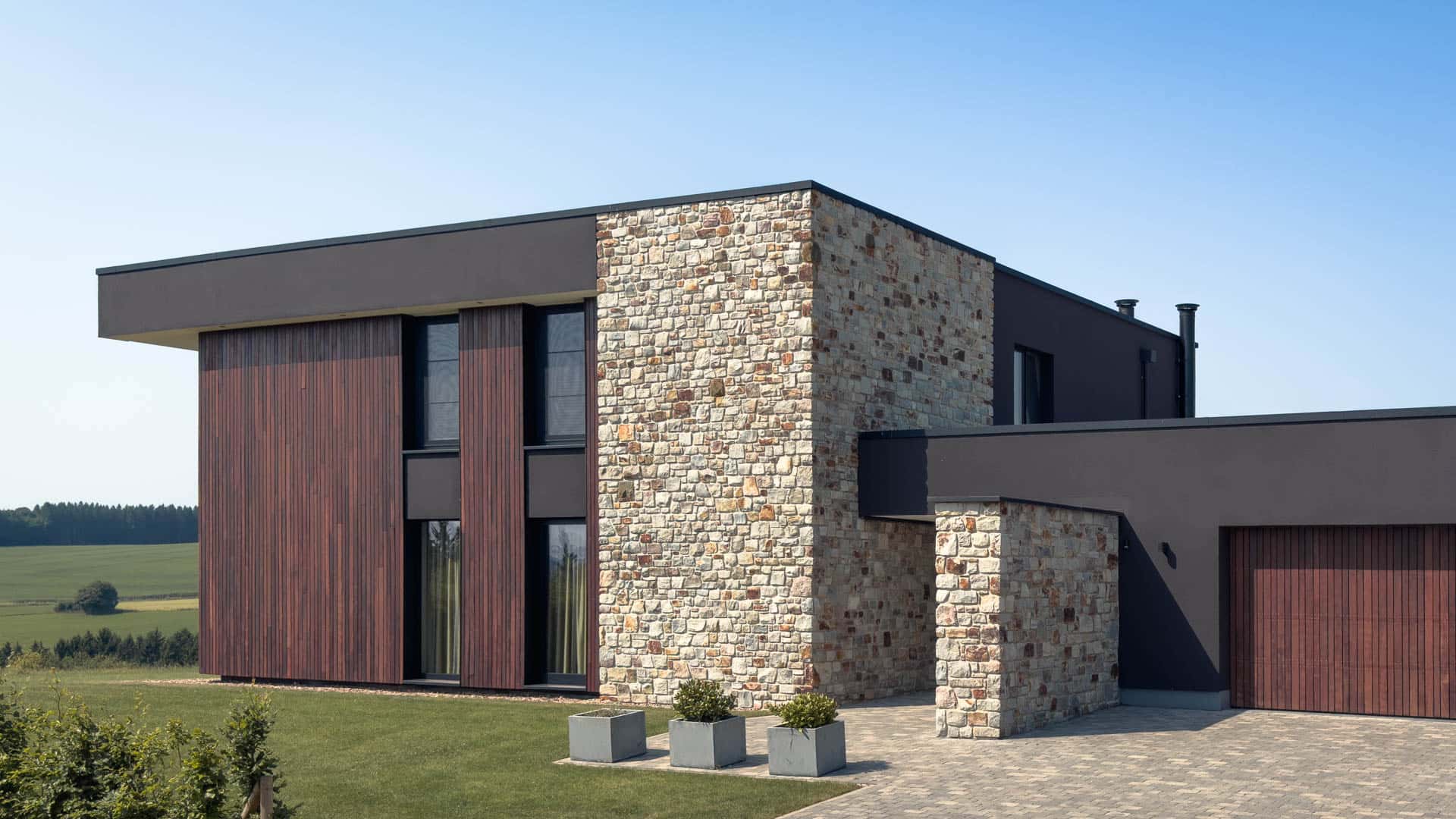 senkrecht angeordnetes Holz für Wärme und Gemütlichkeit sorgt.
