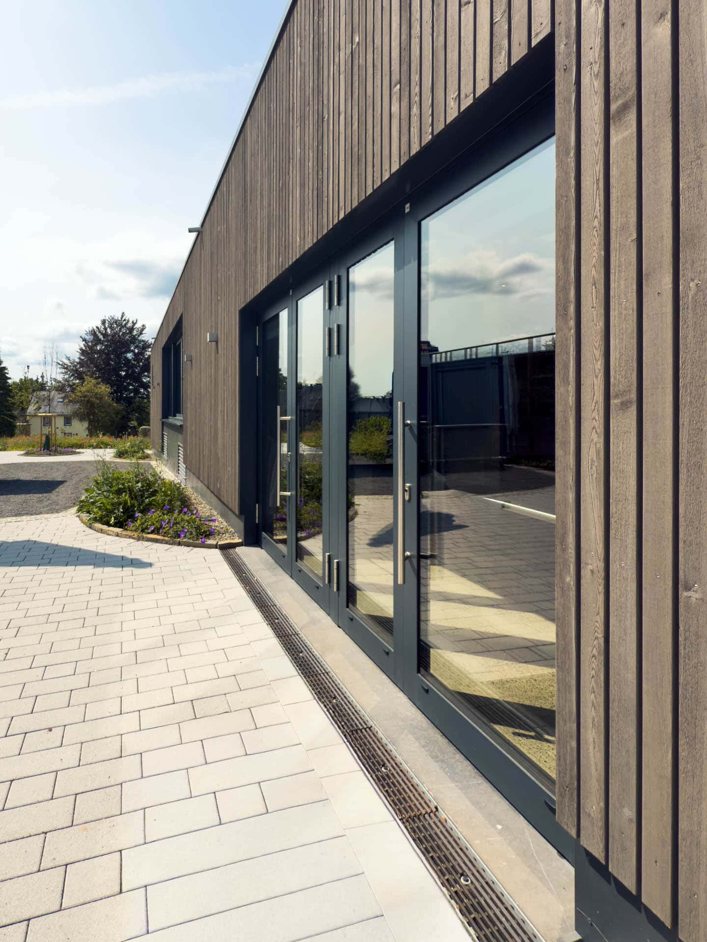 Echte hochwertige Materialien wie Holz, Metall, Glas, und auch Beton prägen das Erscheinungsbild, innen und außen.