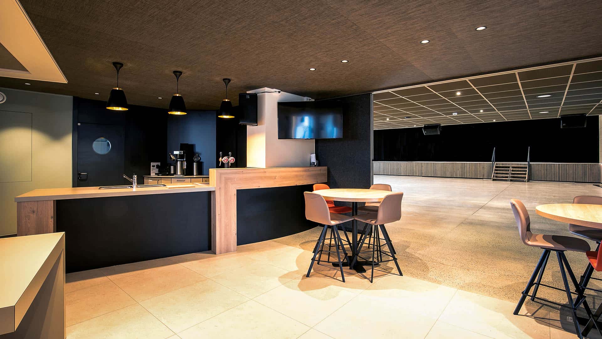 Als Veranstaltungssaal ist schwarz als Farbe präsent