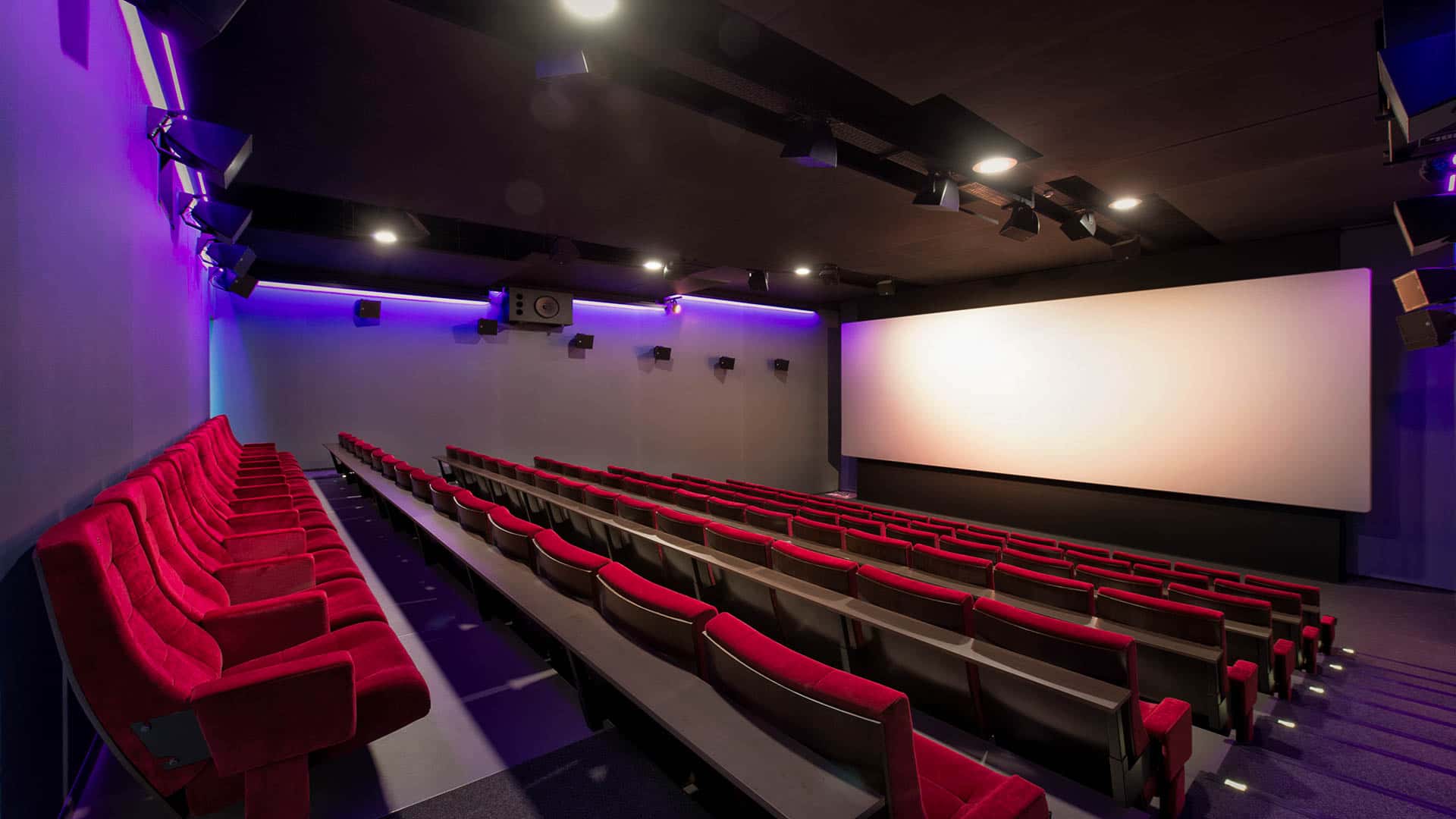 Mit dem Anbau eines neuen Kinosaals auf kleinstem Raum entstand ein spannendes Ensemble aus Alt und Neu. Der Neubau, dezent in Schwarz gehalten, kontrastiert mit dem hellen und freundlichen Bestand. Eine geschwungene Linie verbindet die beiden Gebäudeteile und schafft ein harmonisches Ganzes. Ein neuer Nebeneingang zwischen den Sälen ermöglicht die barrierefreie Erschließung des Komplexes. Aufgrund der Nähe zu Nachbargebäuden wurde besonderer Wert auf Schallschutz gelegt. Energetische Sanierung, modernste Technik und höchster Komfort runden dieses gelungene Projekt ab.