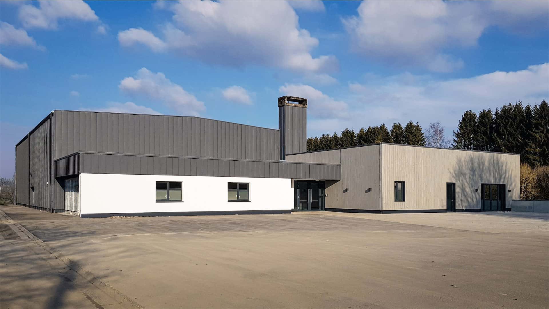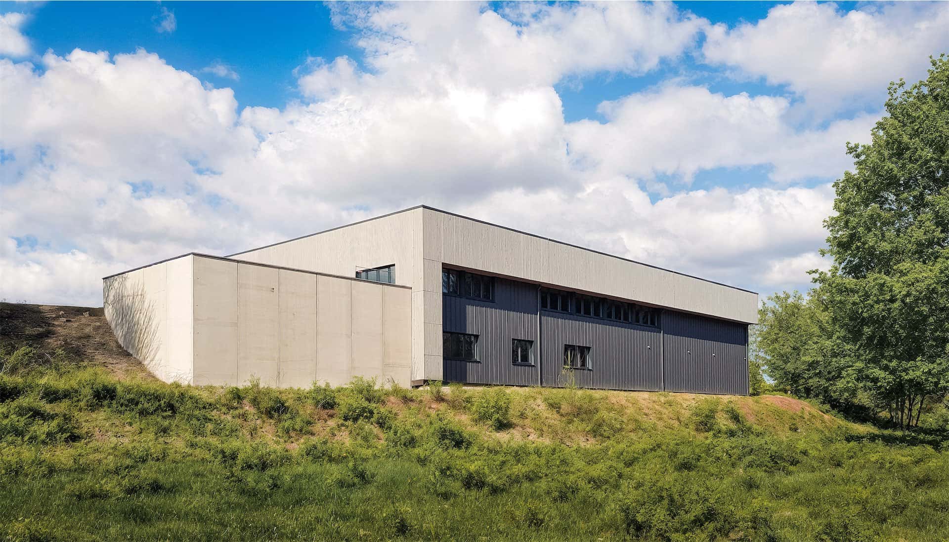 Seitlich der Halle entstand auf einem bisher ungenutzten Hanggrundstück ein neuer, multifunktionaler Dorfsaal mit Blick auf das Dorfzentrum und direkter Anbindung an die benachbarte Grundschule. Der Saal lässt sich flexibel in drei Bereiche gliedern - Café, Dorfsaal oder eine Kombination beider - und eignet sich damit für Feiern, Feste und kulturelle Ereignisse jeder Größe.